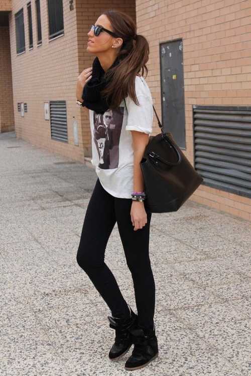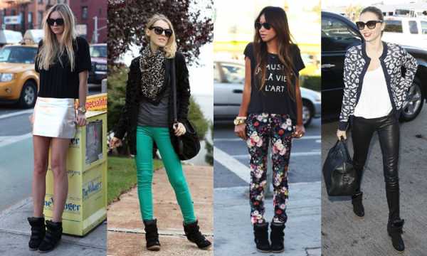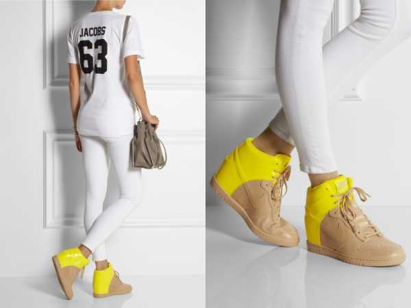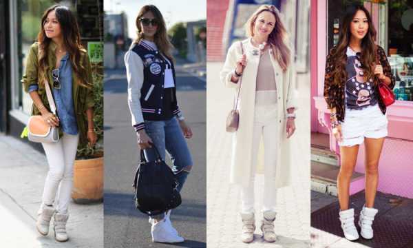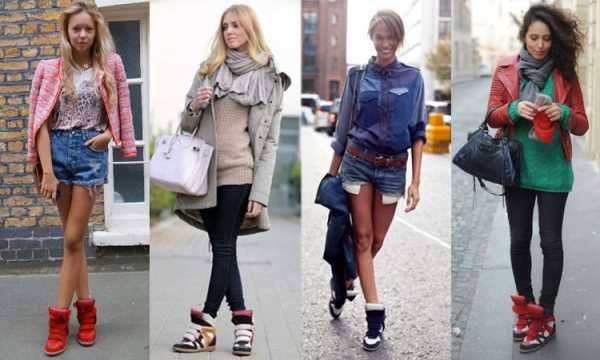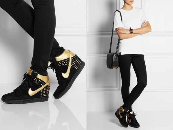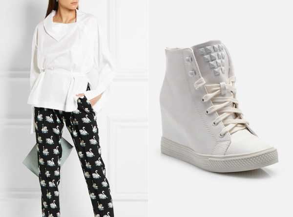 Если выбраны летние сникерсы в спортивном стиле на танкетке или на платформе, то лучше всего носить их с джинсами, брюками, легинсами или шортами. Не стоит надевать классические брюки или джинсы-клеш, лучше всего данная модель будет смотреться с джинсами-скинни или с зауженными книзу брюками.