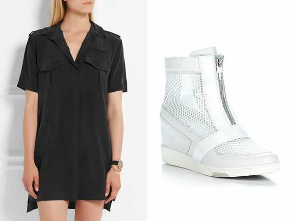 Отлично смотрятся со сникерсами и платья, прежде всего, спортивного стиля. Смело надевайте эту обувь с джинсовыми и кожаными сарафанами, лаконичными платьями прямого или А-образного силуэта.