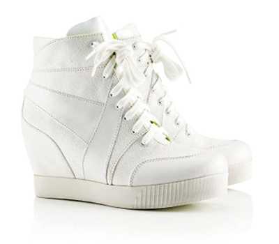 Лучше присмотреться к моделям на скрытых танкетках, приподнимающих пятку на два-четыре сантиметра (рекомендованная медиками высота). Сникерсы настолько запали в души модниц всего мира, что стали представлять реальную угрозу для кед и даже классических туфель на шпильках. Ведь сникерсы очень удобны и подходят к самым разным видам одежды – начиная от спортивных костюмов и заканчивая длинными платьями.