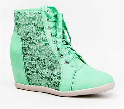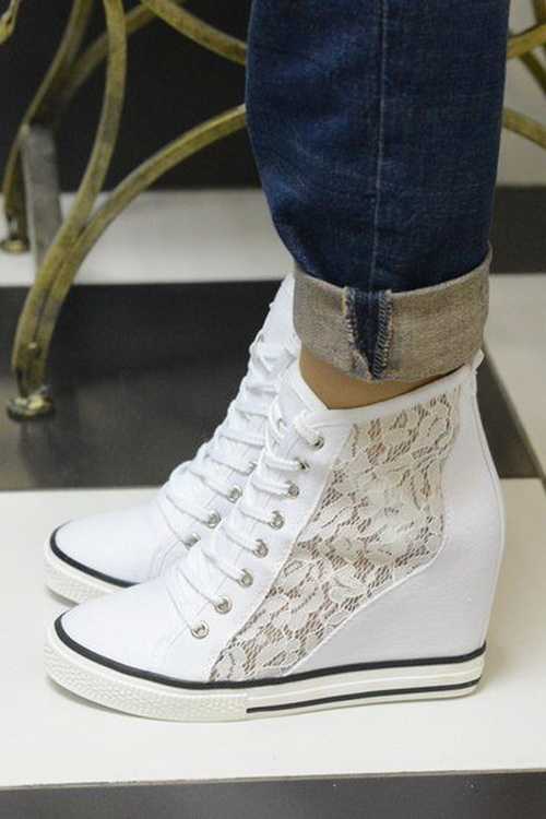 Весьма эффектны модели, имеющие вставки из сетки. Девушками, предпочитающим женственный стиль, лучше отдать предпочтение изящным кроссовкам, украшенным вставками из ажурного кружева и стразами. Тем, кто отдает предпочтение одежде спортивного направления, лучше подобрать модели без отделки или украшенные заклепками или шипами.