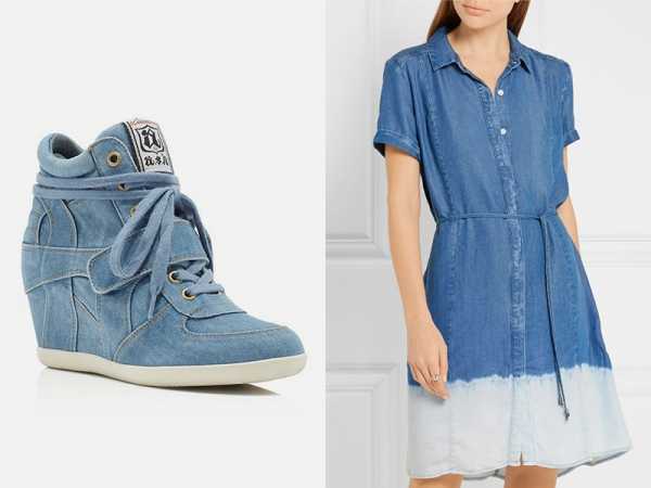 Стилисты не рекомендуют комбинировать летние джинсовые сникерсы с джинсами или шортами из денима, лучше выбрать одежду из других видов ткани. Но один элемент из денима можно включить в комплект, например, бейсболку или куртку.