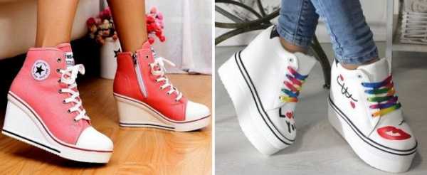 Современные модели выпускают на платформе, но еще более популярны летние сникерсы на танкетке. Этот вариант подошвы привлекателен тем, что он визуально удлиняет ноги и в целом делает силуэт стройнее, но, в отличие от каблука, не лишает обувь устойчивости.