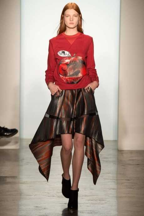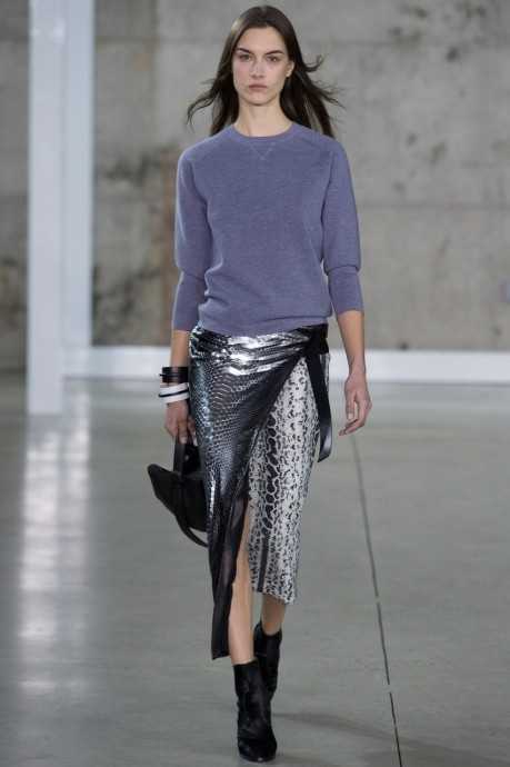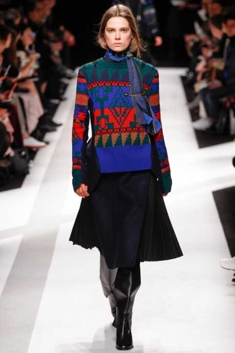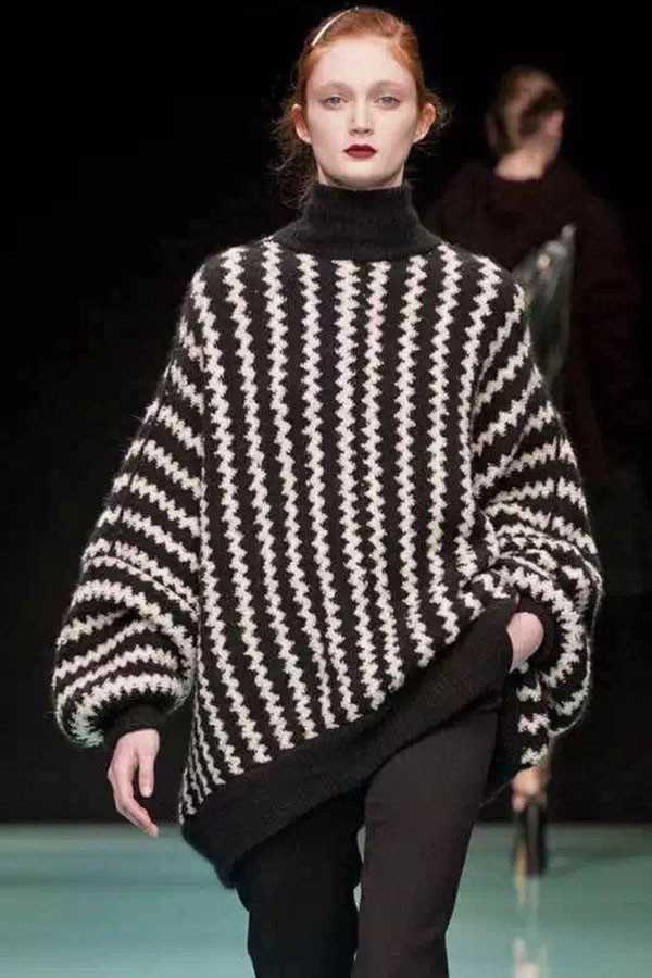 Свитера в новом осенне-зимнем сезоне должны быть выполнены обычной чулочной вязкой, но возможны вариации – «гладь» или «резинка». Тем более, что свитера, связанные таким стилем, более ярко передают анимализированные принты, норвежские звезды или геометрические узоры. Популярными будут свитера из меланжевой пряжи, а также из пряжи секционного крашения, благодаря которой многие модели очень необычно передают цвета.