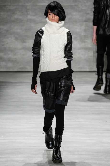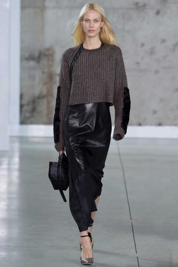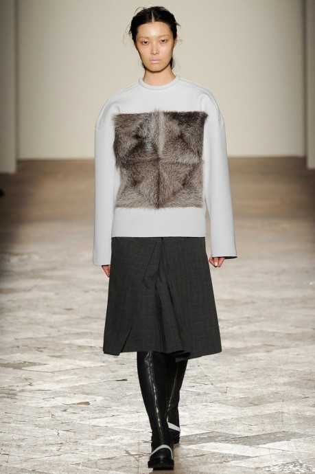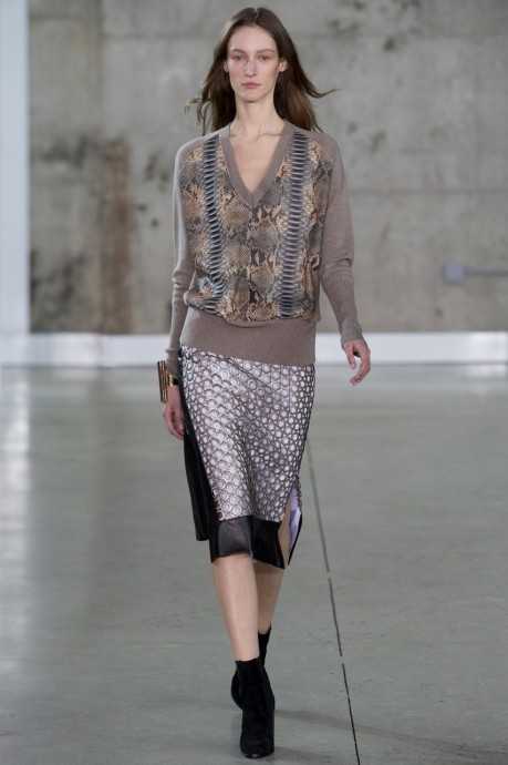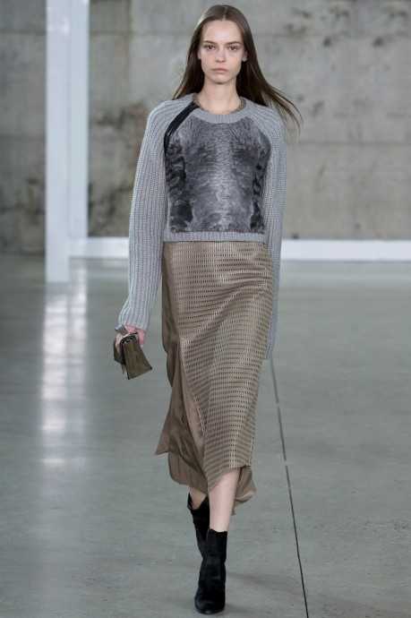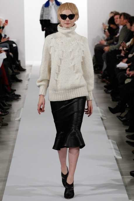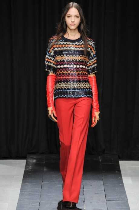 Актуальны и вязаные свитера с крупным, рельефным узором. Особенно популярны сейчас косы. Они придают объем и очень украшают однотонные вещи. Впрочем, в плане украшений дизайнеры в этом сезоне косами не ограничились. В ход пошли меховые вставки на груди и плечах, бахрома – не только по низу, но и в самых неожиданных местах. Эти оригинальные свитера чаще однотонные – ведь элементы украшения и так бросаются в глаза. Образ дополнят длинные брюки или юбка.