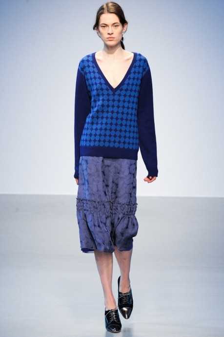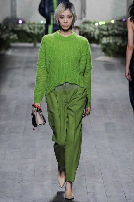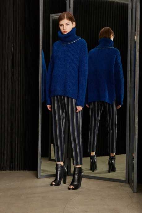 Впрочем, многие модельеры в этом сезоне отошли от безразмерного силуэта и представили подчеркнуто женские свитера с четким, приталенным силуэтом. Они не то чтобы совсем облегающие, но и не очень объемные, талия нередко подчеркивается узким ремешком. Такие топы вполне универсальны для создания как женственно-делового, так и романтичного образа. Хорошо смотрятся они с юбкой-карандашом или с узкими брюками. Цветовая гамма – скорее нейтральная, классическая: приглушенные серые и коричневые, молочно-белые, светлые пастельные оттенки.