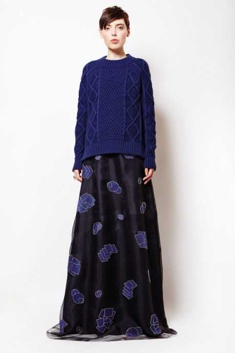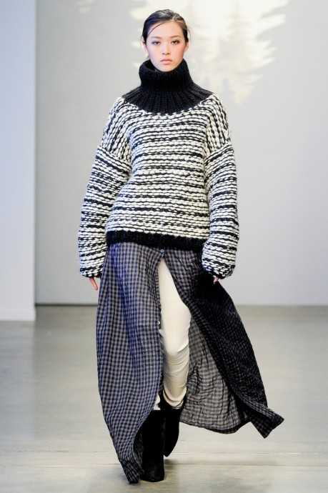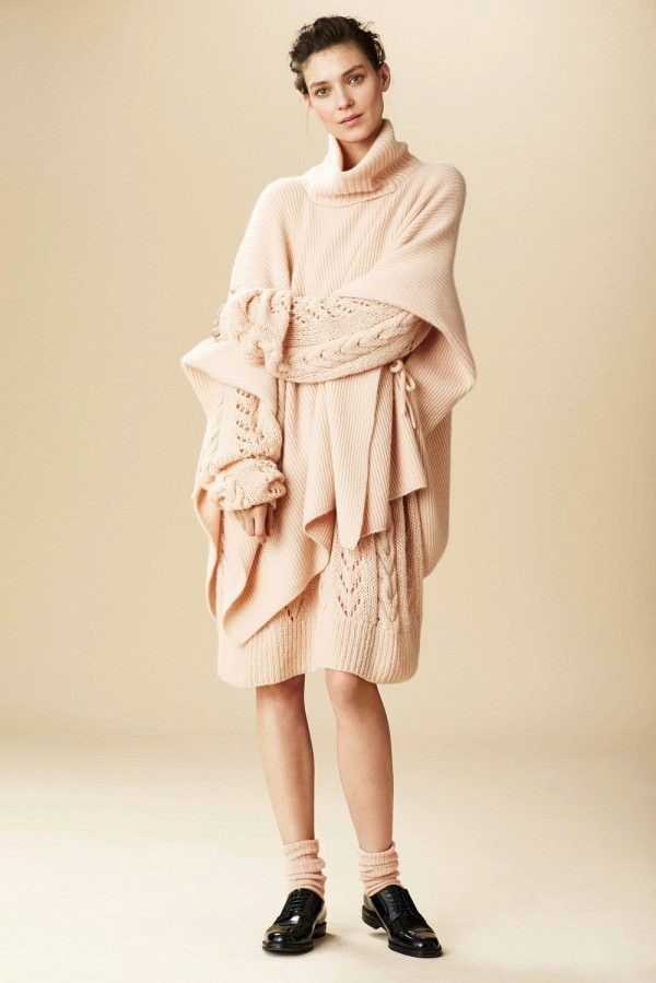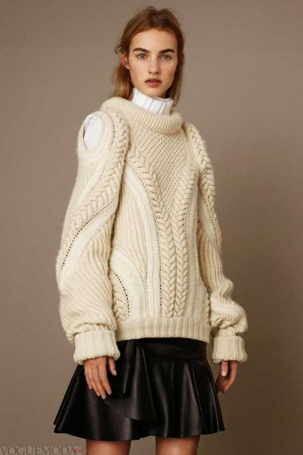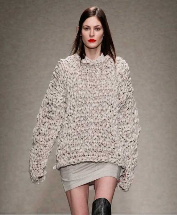 Для холодного времени года нет ничего лучше уютного свитера крупной вязки. Все переплетения из жгутов, кос, выпуклостей создают немыслимые узоры. Грубость и мешковатость форм могут подчеркнуть хрупкость фигуры.