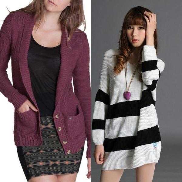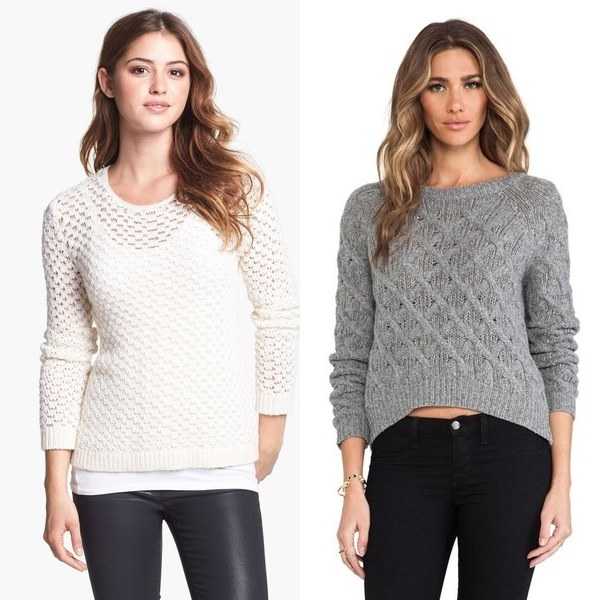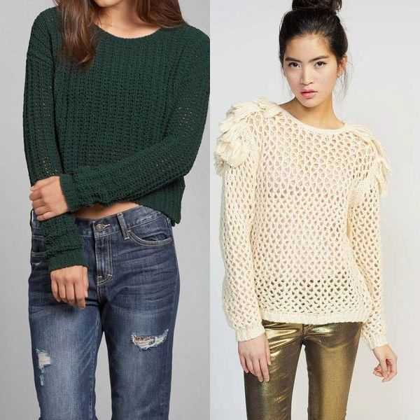 Посмотрите на фото, какие варианты подойдут именно вам. Однако стилисты предупреждают, это не лучший выбор для девушек с формами, а вот стройным и худеньким такие свитеры придутся кстати.