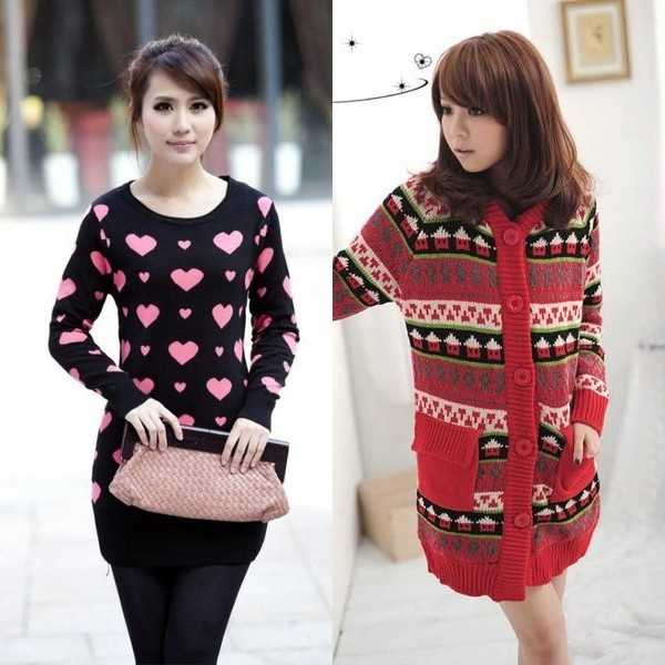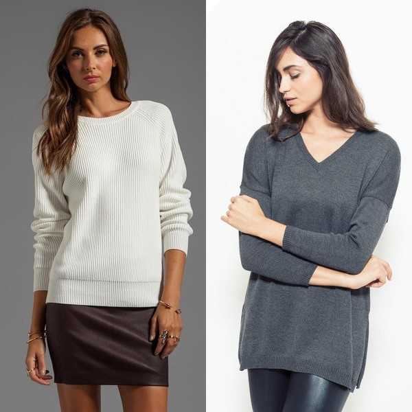 Популярными стали свободные модели свитеров: чем свободнее, тем моднее. В последнее время считается, что если свитер слегка больше по размеру, то он подчеркнет практичность женской натуры. К тому же такая модель хорошо скрывает недостатки фигуры. Хотя женщинам в теле нужно избегать свободных свитеров, потому что они делают силуэт более объемным. Обратите внимание на свитера с длинными рукавами и неровными краями, которые стали так популярны в последнее время.