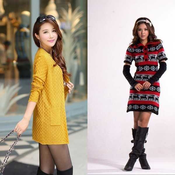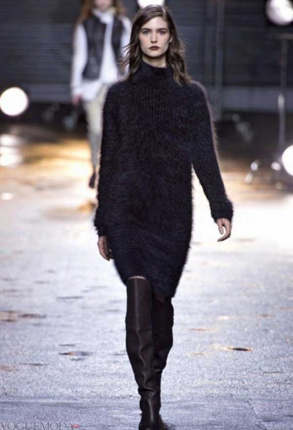 Современный женский свитер претерпел еще одну трансформацию — вязаное трикотажное платье-свитер. Роскошное мини-платье в этом сезоне крайне популярно и, ни одна уважающая себя модница не пройдет мимо такой вещицы.