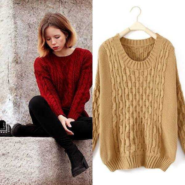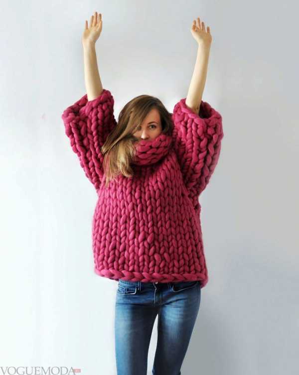 Крупная вязка совсем по-другому раскрывает модную цветовую гамму бирюзового, синего, вишневого. Свитера крупной вязки из грубой шерсти очень удобны, их предпочитают активные девушки и молодые женщины.