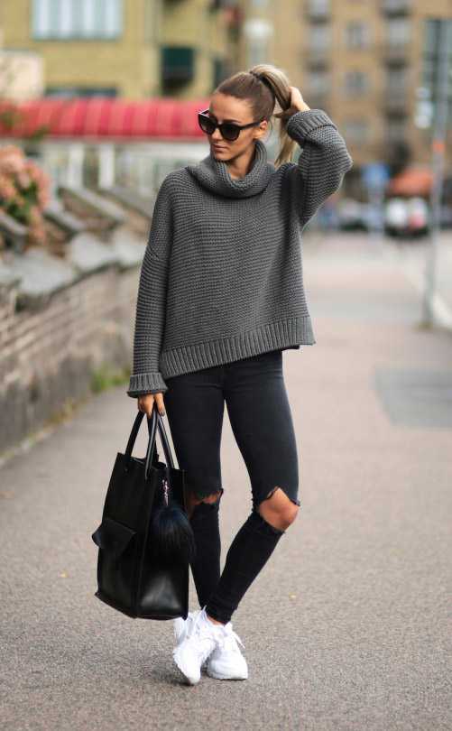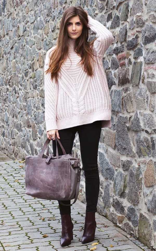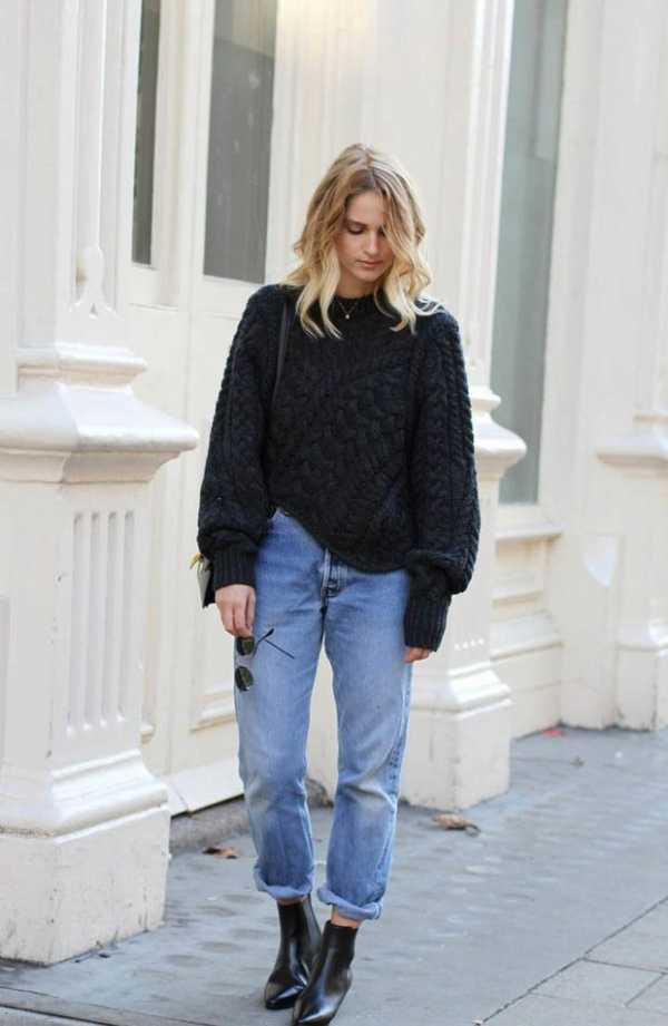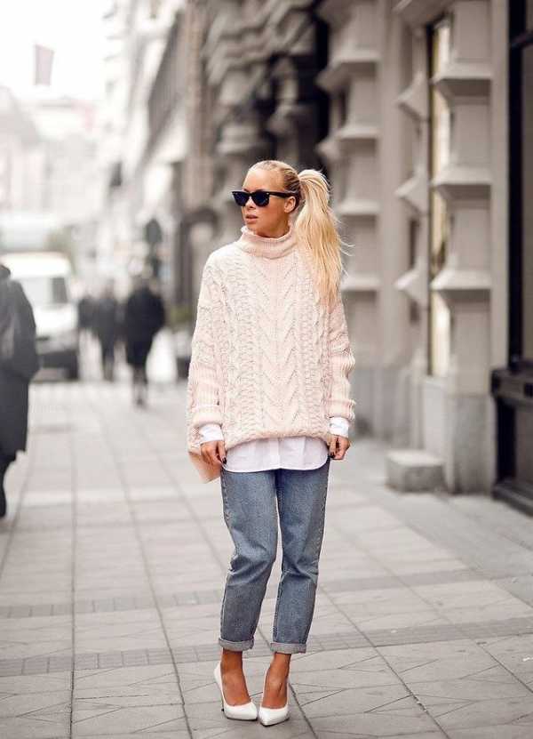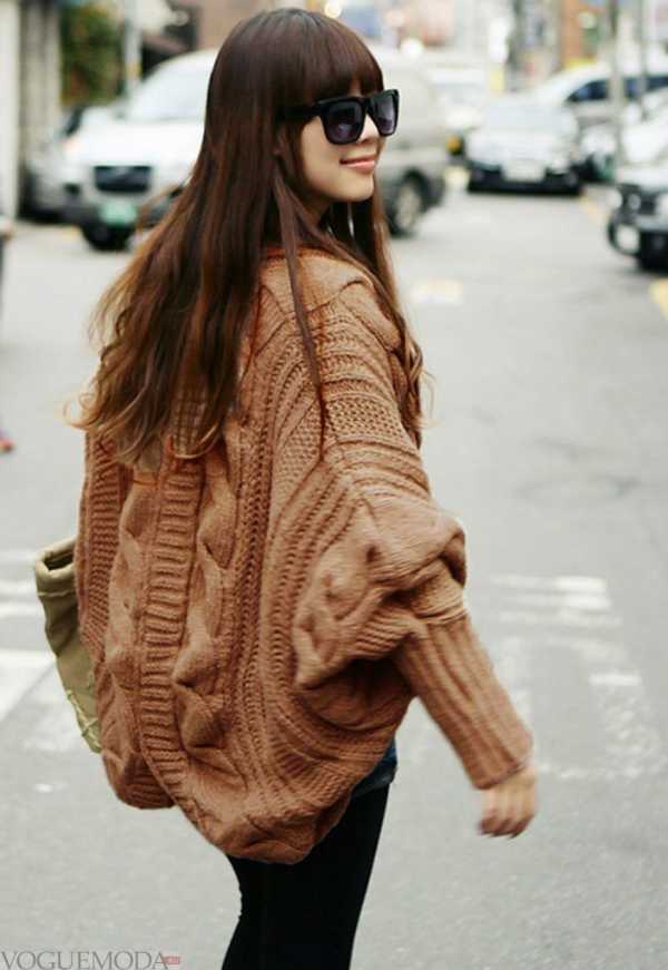 Еще один писк моды – растянутые «папины» свитеры крупной вязки. Отличный вариант для городского стиля.