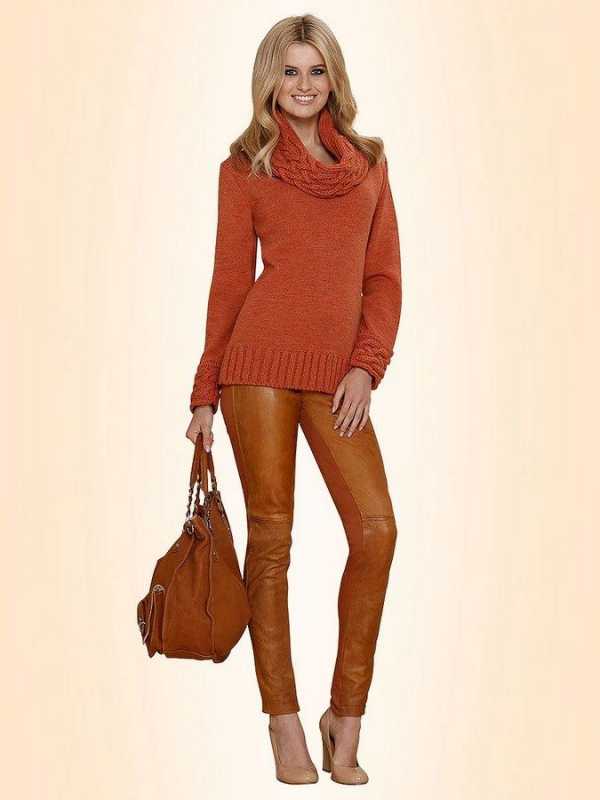 Популярны в этом сезоне, впрочем, как и всегда, свитера с V-образным вырезом. Такая горловина зрительно удлиняет шею, а полностью закрытое горло свитера для девушек с объемным бюстом – далеко не лучший вариант. А вот кофточки и свитера с глубоким треугольным вырезом подчеркнут все, что нужно.