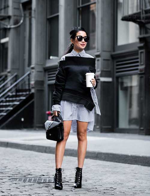 С асимметричными свитерами можно комбинировать одежду любого стиля.
