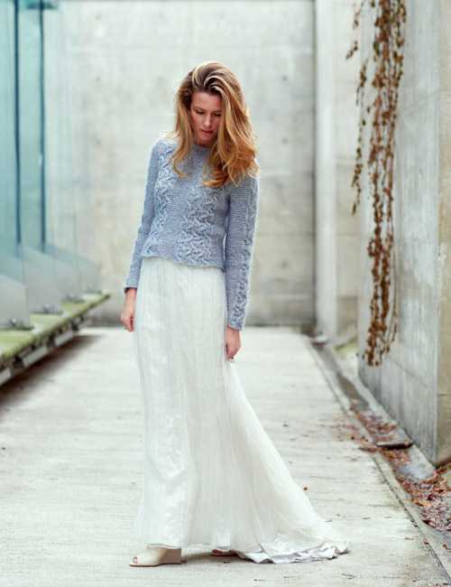 Лучше всего их сочетать с прямыми юбками до колен, длинными в пол, и узкими джинсами. Изделие с крупной вязкой предложено носить с легкой прозрачной юбкой.