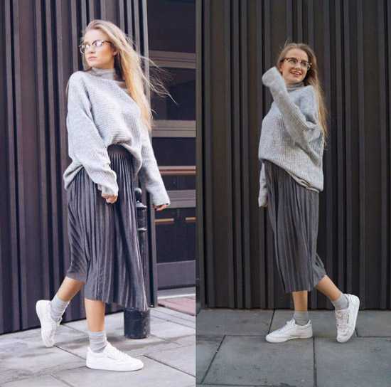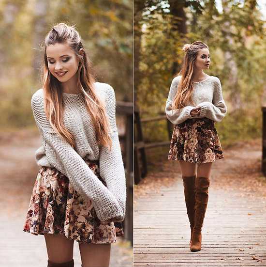 Девушка в свитере, фото. Стильные образы свитер + юбка