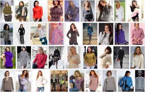 Посмотрите на разнообразие расцветок и принтов женских свитеров на фото.