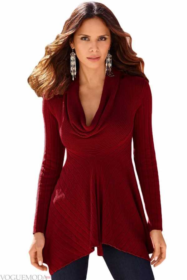 Асимметричные свитера подойдут любой фигуре. Драпировки, неровные края дают возможность изменять силуэт: подчеркивать талию, делать ее уже, а грудь или бедра пышнее. Дизайнеры предлагают довольно вызывающие модели с рукавами разной длины, закругленным разрезом, воланами и оборками.