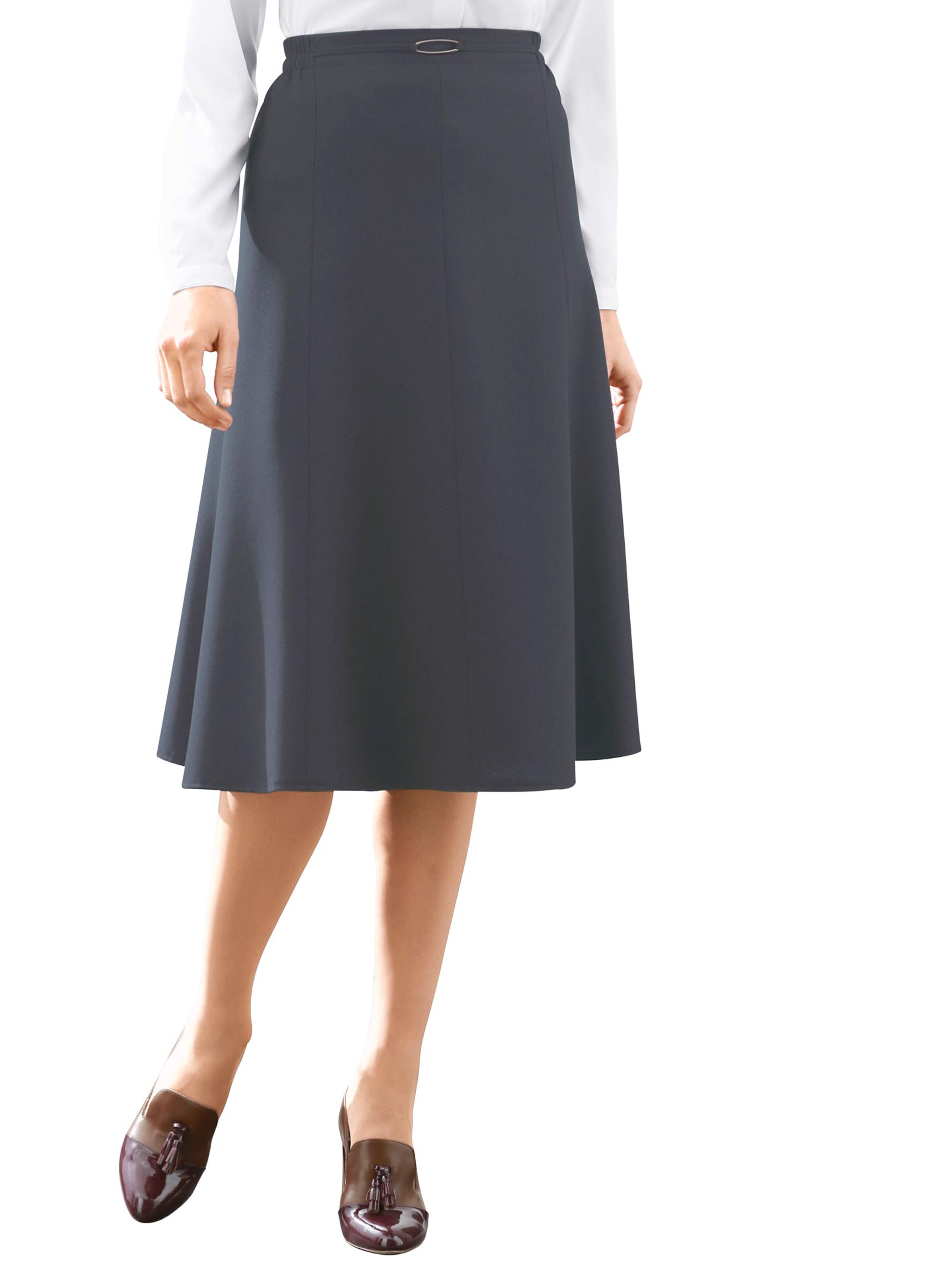 Для офиса идеальным выбором станет юбка до колен из однотонной костюмной ткани с умеренным расширением внизу. Ее можно будет дополнить блузой и приталенным жакетом.