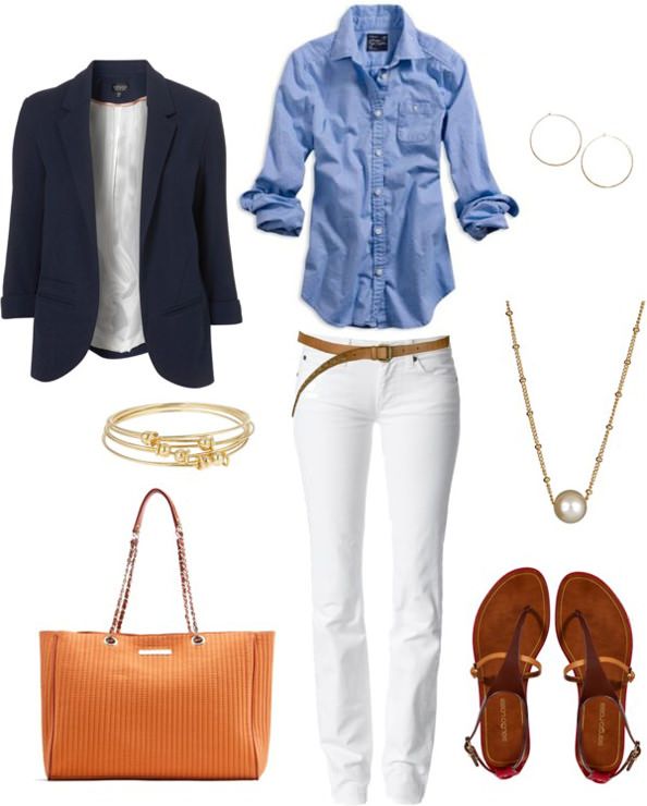 Следите за сочетанием комплекта в целом – выбирая цвета избегайте контрастов, этот прием лучше оставить на холодное время года. Заменить рубашку на базовую белую футболку – отличный способ уйти от business стилистики.
