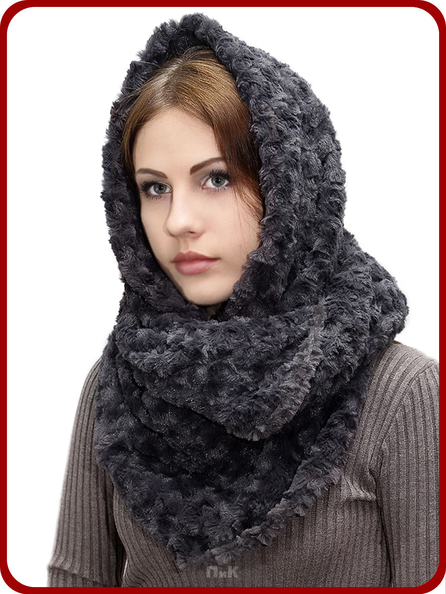 Поэтому больше всего надетый в виде капюшона снуд подойдет женщинам с квадратной или круглой формой лица.