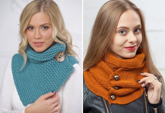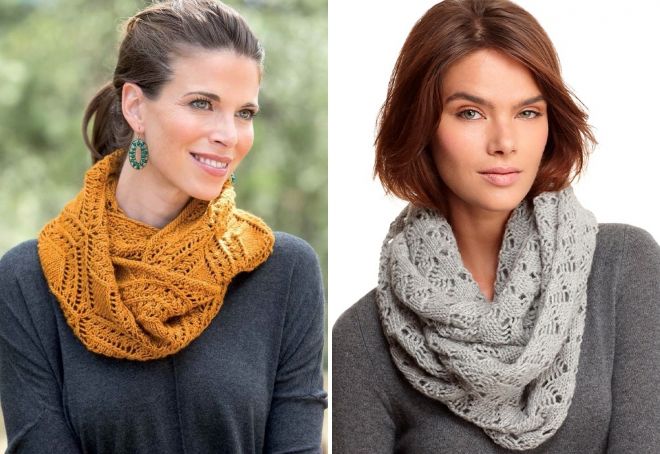 Длинный вязаный шарф хомут лучше всего завязывать поверх пальто или куртки. Для этого можно просто сделать одну-две петли вокруг шеи, что будет выглядеть очень элегантно и симметрично в зимнее время. Концы могут свисать спереди, неплохо выглядит, когда один конец переброшен через плечо.