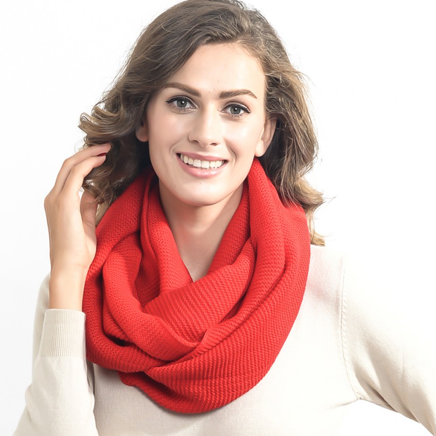 Если вам приглянулся вязаный шарф-хомут, то лучше остановиться на моделях спокойных классических расцветок. Они не будут выглядеть слишком навязчиво.