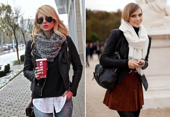 Как носить шарф с пальто или кожаной курткой