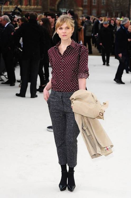 Зимой очень важно правильно подобрать обувь под укороченную длину. Изделия не заправляются в сапоги, этим можно напрочь испортить образ. Идеальным вариантом будет сочетание с ботинками или ботильонами. В качестве верха зимой можно выбирать среди коротких дубленок, курток, полупальто. Они должны быть пошитыми из традиционных теплых тканей – шерсти, драпа, кашемира и т. д.