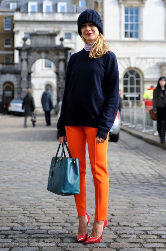 Синие брюки — как сочетать с другими вещами в осенне-зимний период и весной
