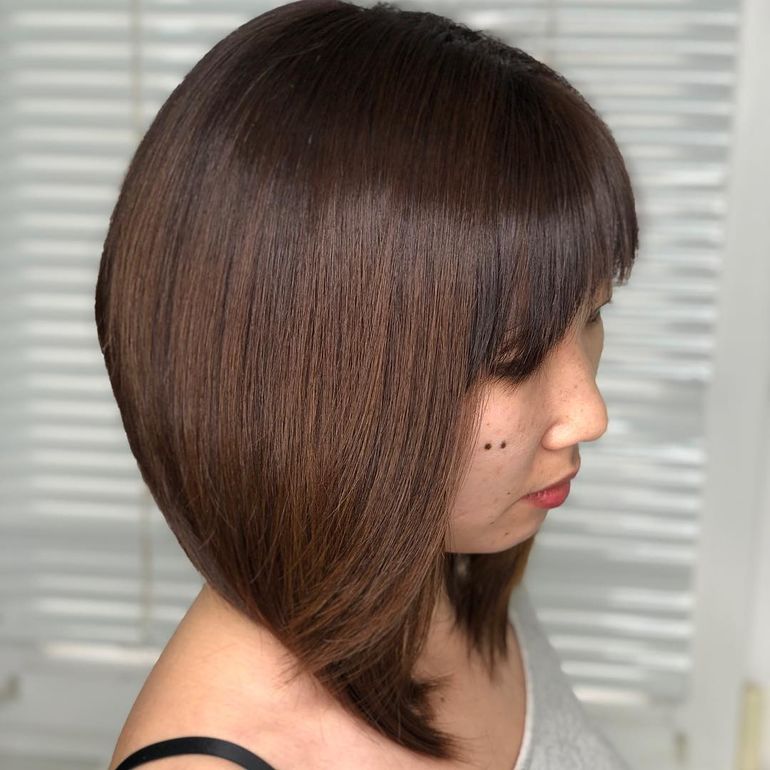 Что может быть проще прямого среза? Классика впишется и в деловой образ, и в вечерний — многое зависит от укладки.