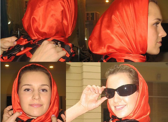 Так получится очень элегантный и загадочный образ, а при желании концы можно и не заправлять, оставить их сзади или расправить на плечах. Как правильно завязывать его на голове нет четких правил, можно отступать от привычных схем.