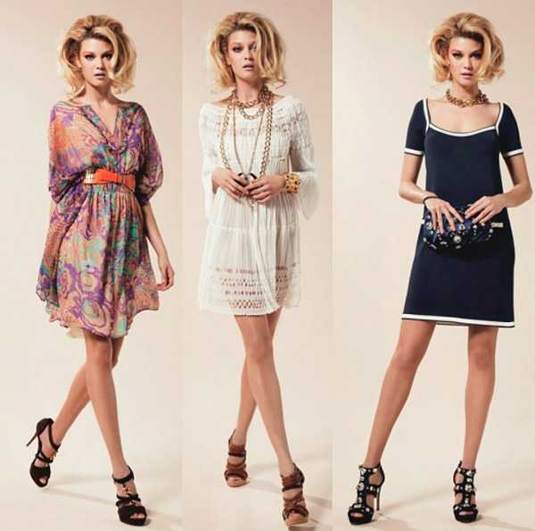 Стилисты рекомендуют выбирать платья из тонкого шифона, тканей с яркими рисунками. Хорошо выглядят платья с акцентом на талии, допустима короткая длина, открывающая колени.