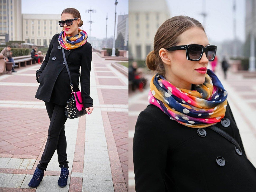 Совместите шарф с вашим ансамблем, наденьте свободный на шею