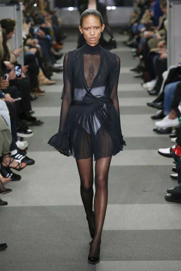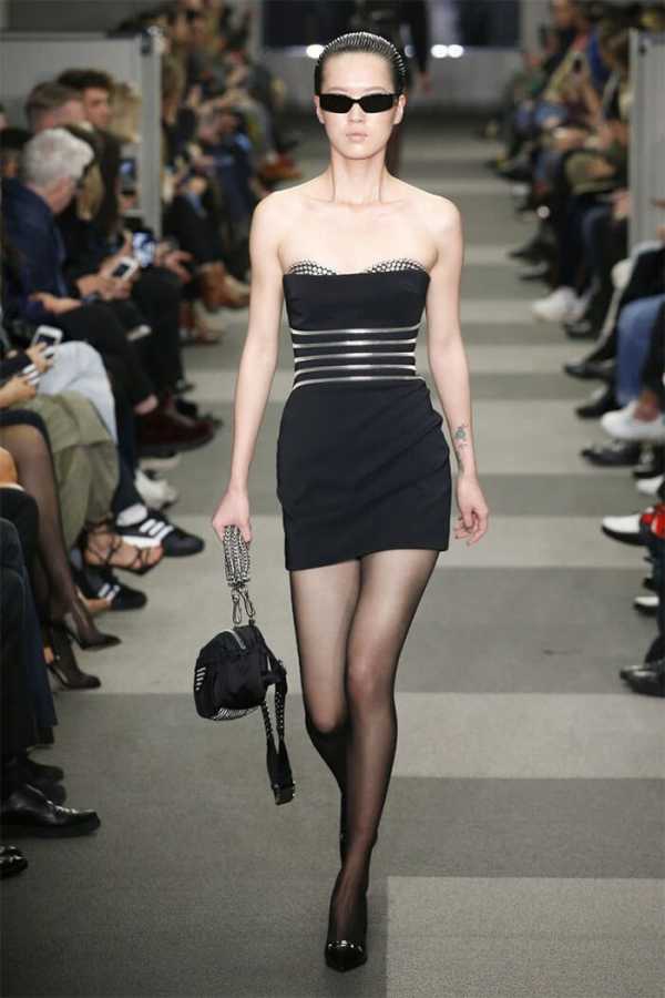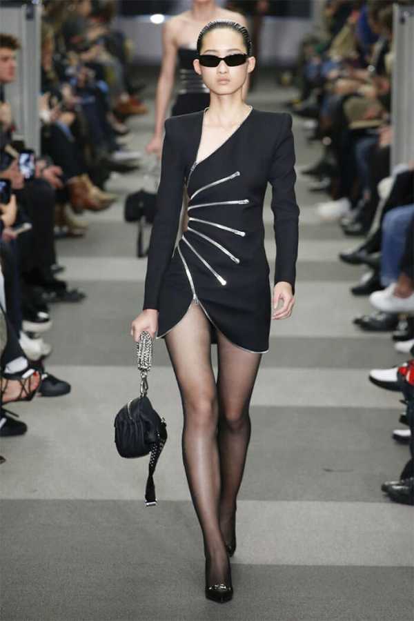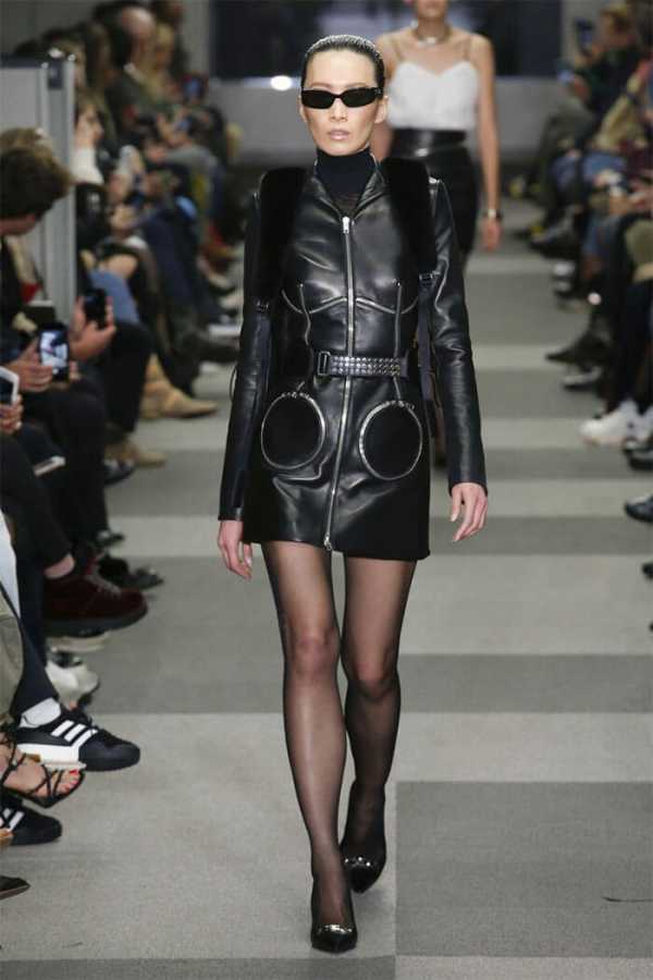 Модель с показа Alexander Wang осень/зима 2018-2019#5 Дерзкая женственность кожаных платьев мини