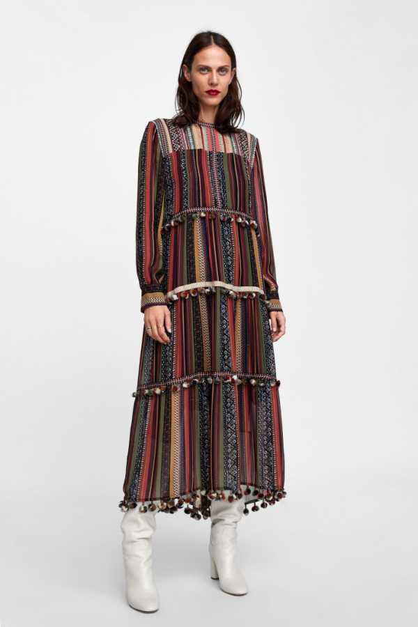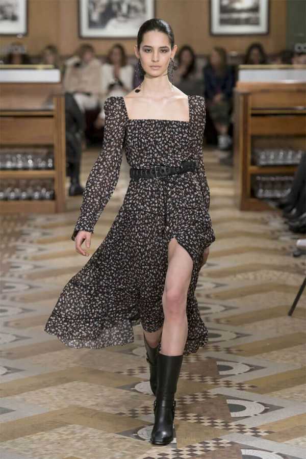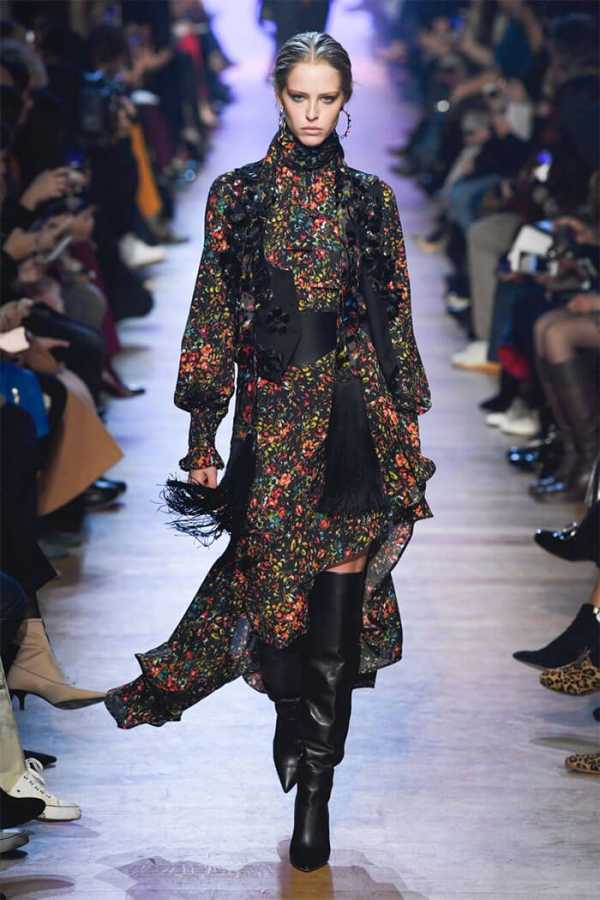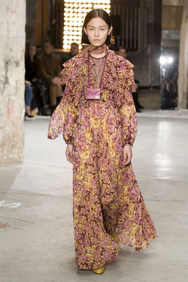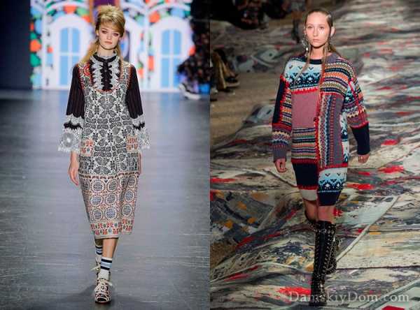 Возвращаясь к 60-м годам, которые также вошли в историю как эпоха хиппи, мы замечаем большое количество этно-принтов и фолк-мотивов в моде той поры. И в этом сезоне они были задействованы в последних показах, поэтому широкие платья с затейливыми цветочными принтами и орнаментами, джинсовыми вставками и бахромой уже ждут своего звездного часа, чтобы оформить теплый союз с грубыми зимними ботинками и длинным пальто-оверсайз.