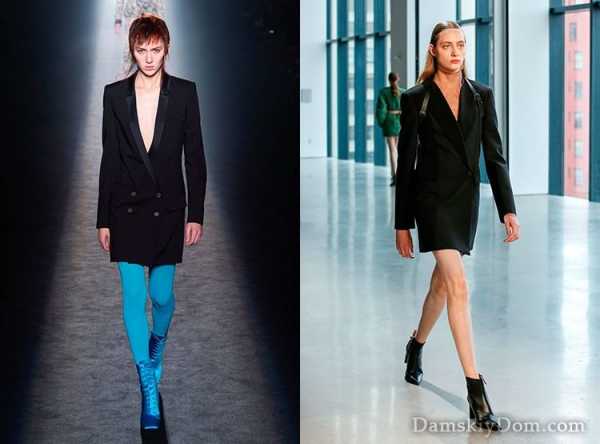 Ив Сен-Лоран уже давно сделал женские платья, напоминающие кроем мужские пиджаки, отдельным и достаточно универсальным нарядом. Для этой осени и зимы дизайнеры запаслись этой идеей, придумали много стильных и оригинальных моделей платья-пиджака.
