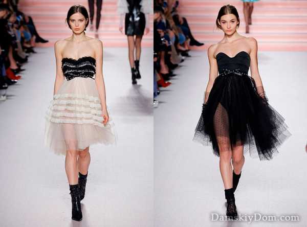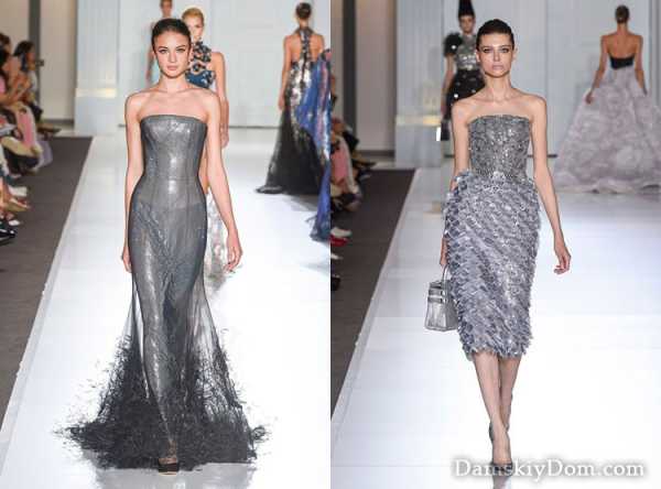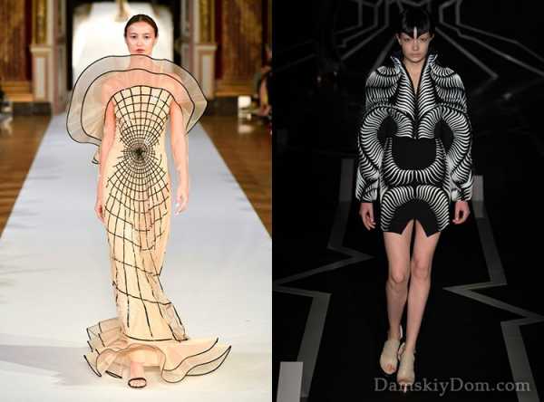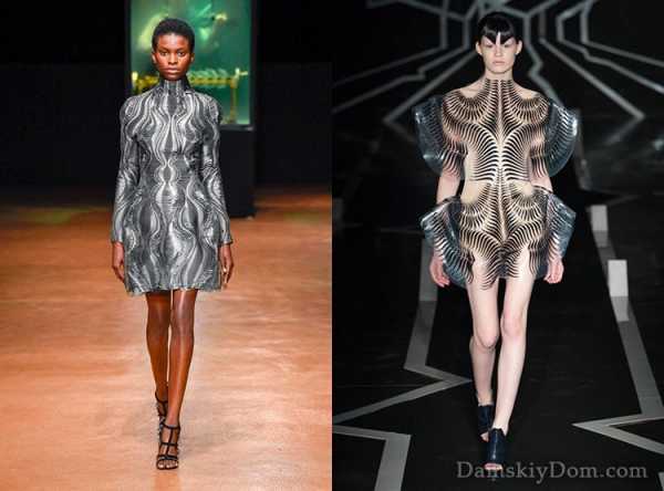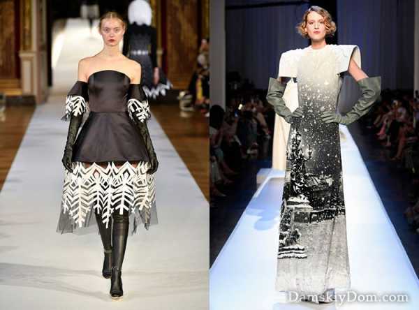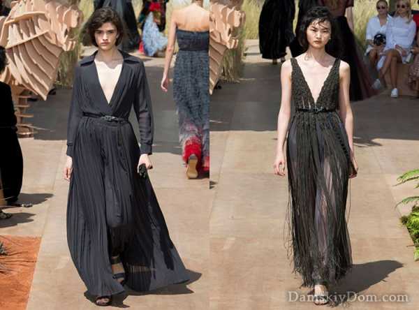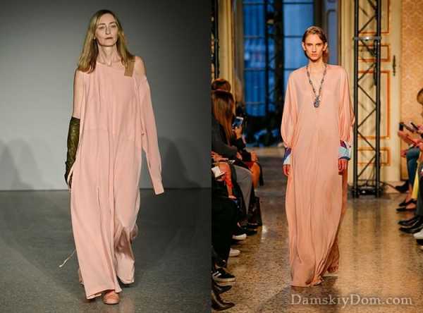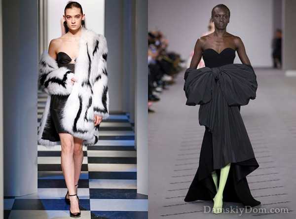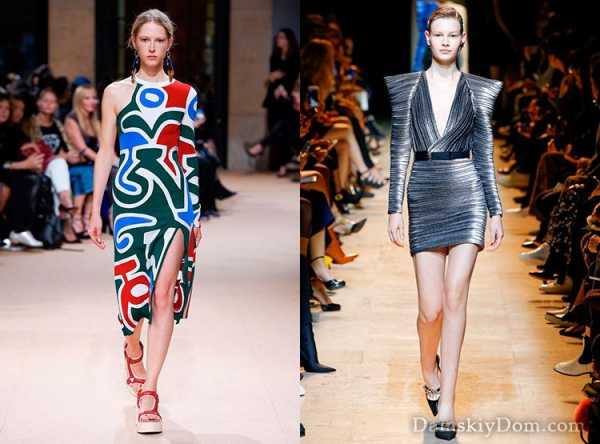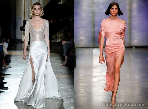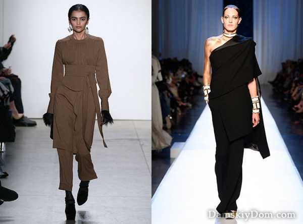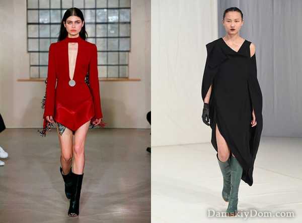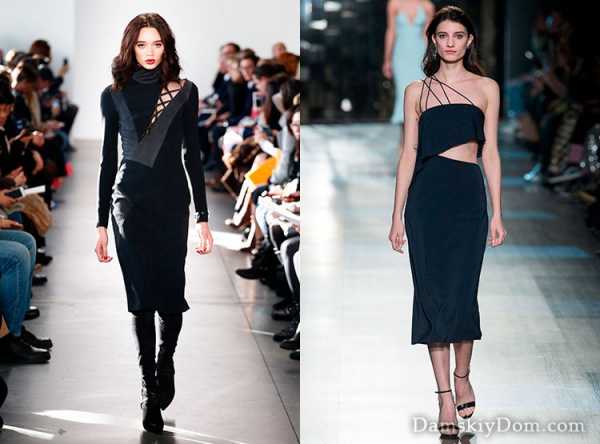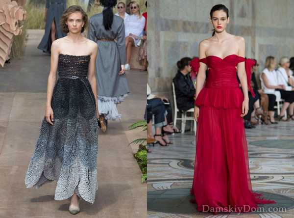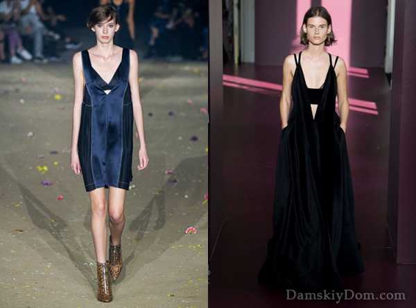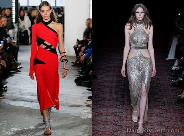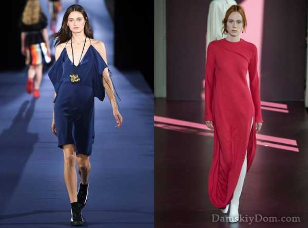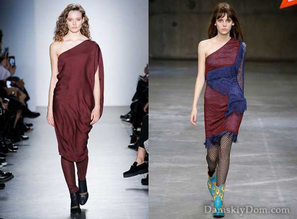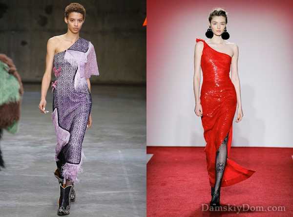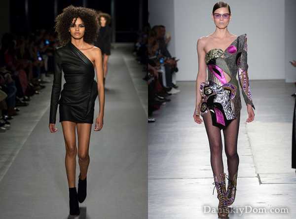 В этой же линейке ведущие дизайнеры представили оригинальный тренд — разнобортные платья. Их главная особенность заключается в том, что правая сторона кардинально отличается от левой. Так, это может быть контрастная расцветка или комбинация различных тканей и фактур.