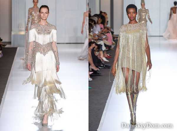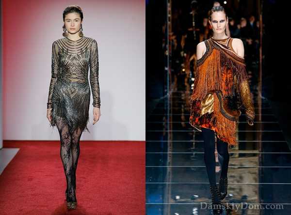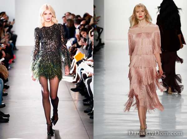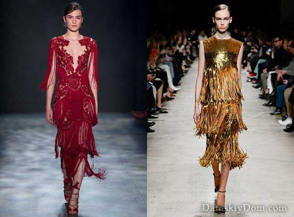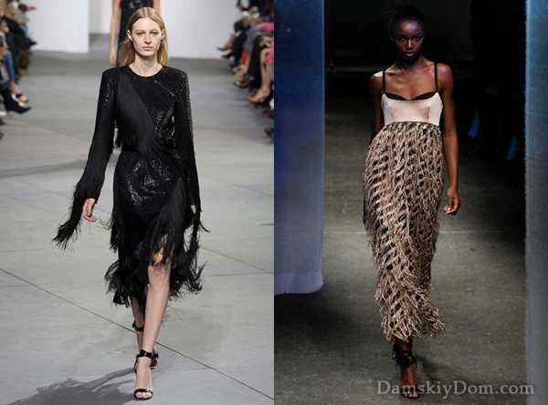 Блестящие шелковые нити, которые ассоциируются с платьями для страстных латиноамериканских танцев, в этом сезоне стали украшением многих коллекций. Лоснящаяся бахрома в движении делает любое платье еще более стильным и изысканным, наделяя даже самые простые фасоны особым шармом. Шелковый бум продолжается: атлас, гипюр и ткани с люрексовыми нитями – идеальная основа для роскошного платья, декорированного бахромой. Дополнить образ поможет лаконичная пара обуви – однотонные кожаные стилеты или босоножки-гладиаторы.