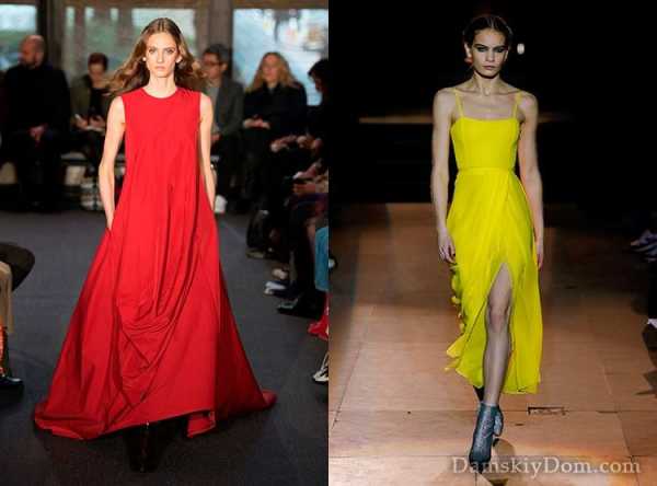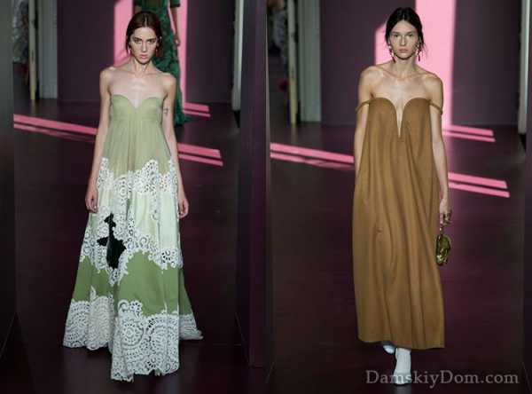 На показах Carolina Herrera, Marni, Christian Siriano интересно выделялись платья, соединяющие два цвета. Преобладают длина макси или миди, прямые или расширяющиеся к низу фасоны.