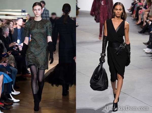 Комплект, состоящий из платья и перчаток, подойдет не только для бала! В этом сезоне даже повседневные и деловые модели требуют такого дополнения, как фактурные кожаные перчатки, длиной до предплечья. Их следует носить поверх белой блузки, платья или туники (вне зависимости от длины рукава), а для целостности образа можно приобрести кейп или пальто без рукавов – дизайнеры позаботились о том, чтобы вы выглядели стильно и не мерзли даже в самую ветреную погоду.