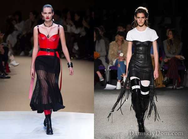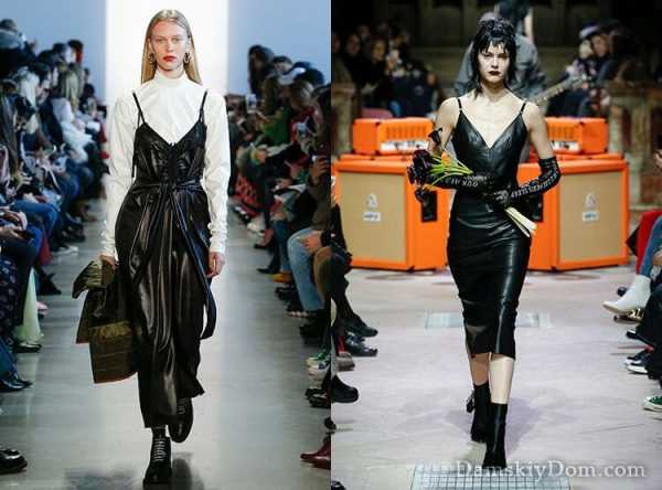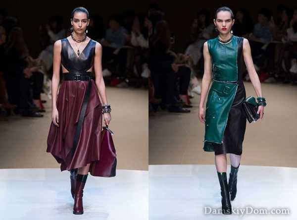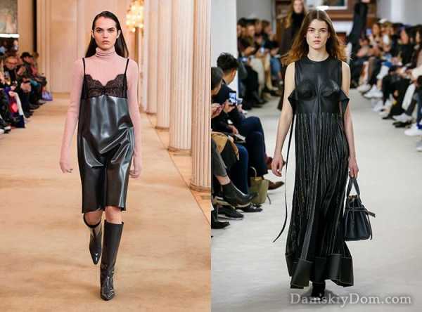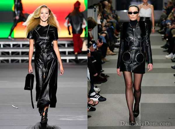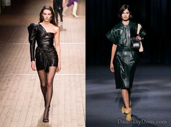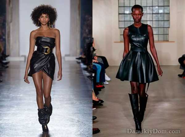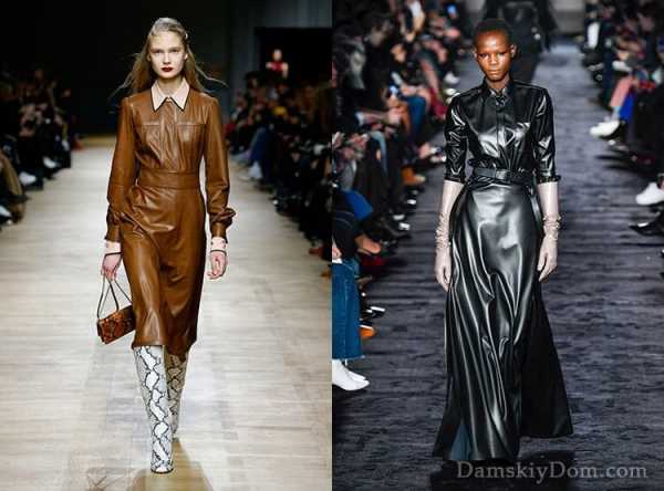 Последние коллекции Saint Laurent, Versace, Mugler, Michael Kors и других именитых дизайнеров пополнились короткими обтягивающими платьями из кожи. Преобладают сдержанные черные, красные, коричневые, темно-зеленые расцветки. Объемные плечи и пояса, отрезные рукава, асимметричные рюши, модели с запахом сделают образ уникальным и ярким.