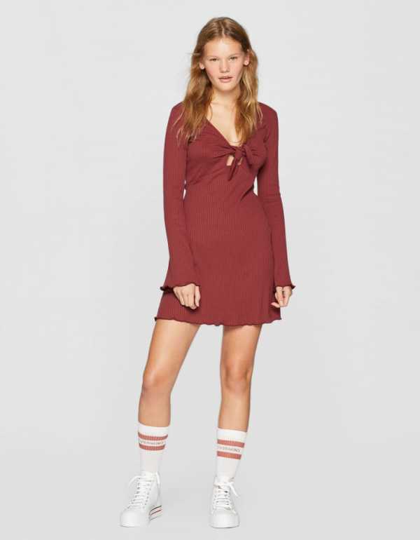 Кто следит внимательно за трендами, знает, что этим летом очень модными были комбинезоны, платья и костюмы с завязкам и на груди. Тренд перекочевал в осенний, все то же самое, только теплые ткани.