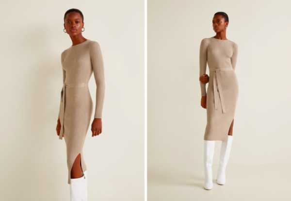 Приталнное платье в рубчик выглядит очень женственно и соблазнительно. А нюдовый оттенок такого наряда делает его еще более стильным. На загорелой коже наряд будет особенно удачно смотреться