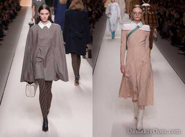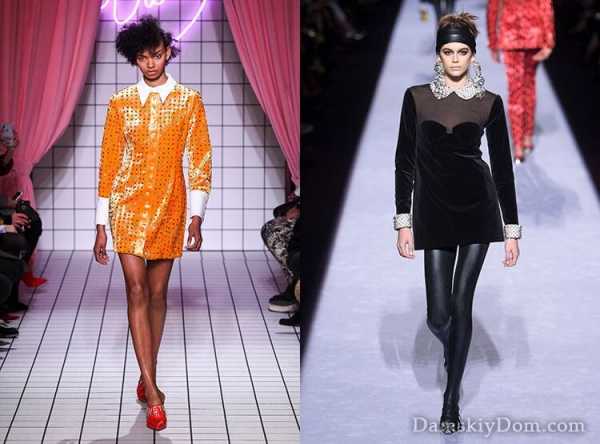 Если в прошлом сезоне мы заимствовали из мужского гардероба рубашки и использовали их при составлении базового гардероба. Но есть еще одна деталь, которую дизайнеры переняли в рубашечном стиле и перенесли её не только на повседневные, но и на модные вечерние платья осень-зима 2018-2019. Теперь из тканей с люрексом и шелковых материалов выглядывает светлый воротничок, будто бы платье надето поверх рубашки. Не говоря уж о деловых платьях черного цвета с белоснежными воротниками и манжетами.