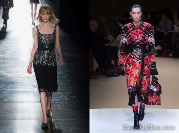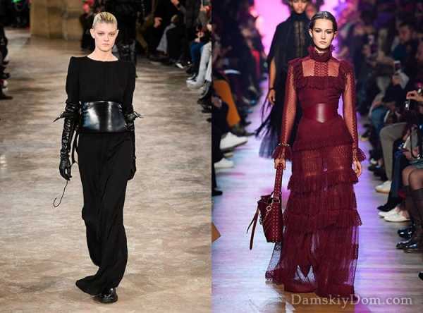 Линия талии сужается с каждым сезоном, и этой осенью она будто бы достигла своего пика. Даже платья свободного кроя требуют максимально затянуть пояски. Кстати, о последних. Свой набор аксессуаров придется дополнить широким поясом из кожи, винила или с металлическими вставками. Некоторые модели напоминают тяжеловесные кожаные корсеты, которые весьма гармонично сочетаются с легкими полупрозрачными тканями.
