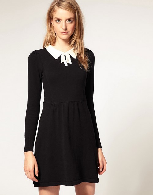 Черные осенние платья и белые вставки на воротниках или манжетах отлично впишутся в офисный стиль.