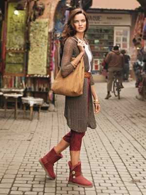 Появились также очень уютные вязанные угги. Теперь их носят не только зимой, летние модели делают из легких натуральных тканей и других, подходящих материалов. Эта обувь, как и мокасины, отлично подходит молодым и динамичным, ценящим комфорт и не признающим условностей. Если ваш характер таков — отправляйтесь в уггах прямо на вечеринку (не зря же придуманы модели сплошь расшитые пайетками), а если вы придерживаетесь классических взглядов на обувь, то носите угги тогда, когда вам это удобно, найдется немало случаев когда нужна такая удобная обувь. Конечно, такая обувь не подходит к деловому стилю, но вполне подходят ко многим другим. Например, это идеальная обувь если вы решили провести выходные или рождественские каникулы ближе к природе, встречаете новый год за городом, планируйте романтичный уик-энд вдвоем.
