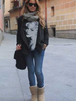 Можно одеть с уггами прямые джинсы и заправить их, но это все же выглядит немного небрежно.