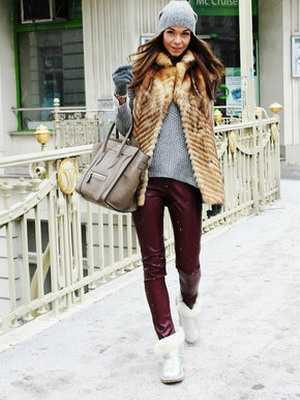 Главный хит – угги с меховой отделкой (этот принцип прослеживается и в отношении перчаток). Угги с меховой опушкой делают ноги визуально более хрупкими и женственными.