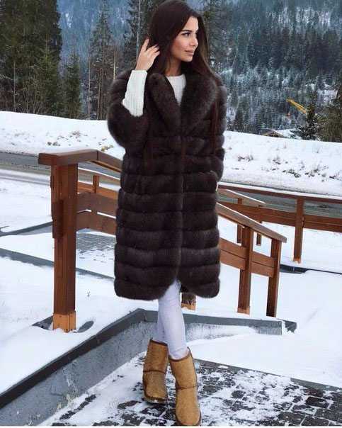 угги сочетаются не дорогими шубами длиной до колена, пальто, пуховиком.